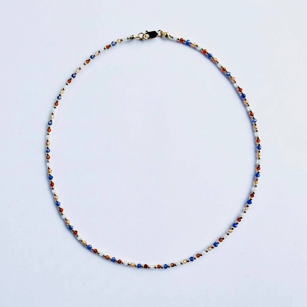 Dainty Multicolor Cubic Zirconias with 18k Gold Beads Necklace