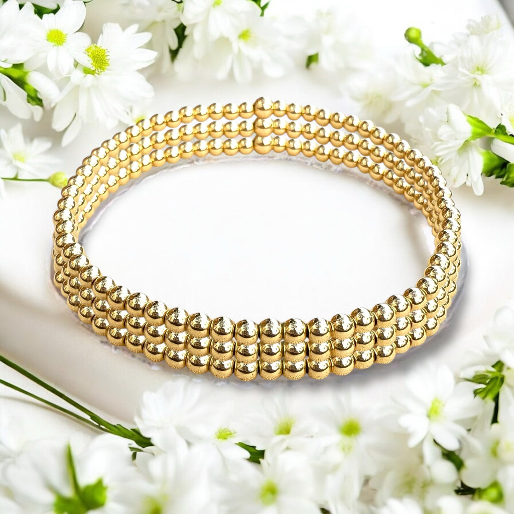Step into a world of timeless elegance and sophistication with our stunning 18k gold filled beads stretchy bracelet.
