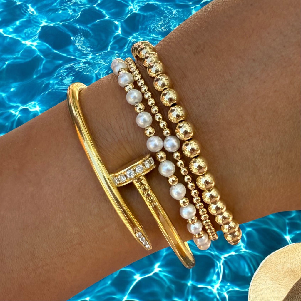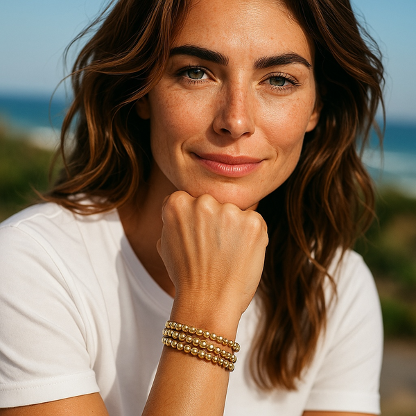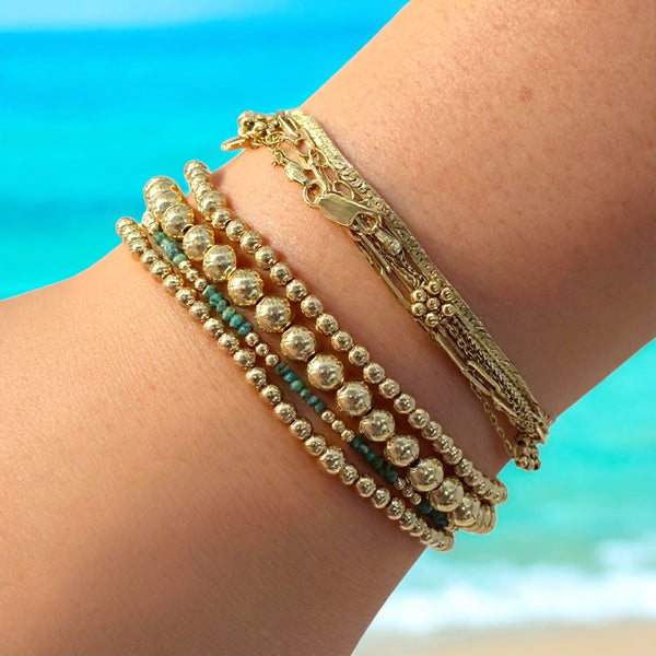 Step into a world of timeless elegance and sophistication with our stunning 18k gold filled beads stretchy bracelet.